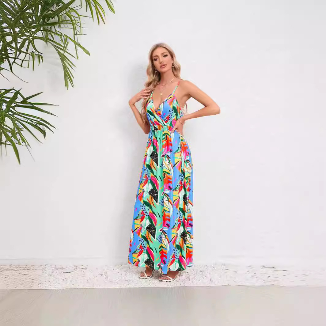 European and American foreign trade 2024 summer women's new fashion sexy suspenders backless slim dress