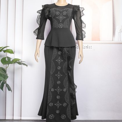 | nameOriginal | European and American Foreign trade African women's clothing AliExpress private clothing ladies slim fit dress two-piece top skirt |