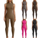 European and American Foreign Trade Amazon Women's Yoga Jumpsuit Slim-Fit Rib Sleeveless High Collar Top Sports Jumpsuit