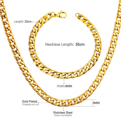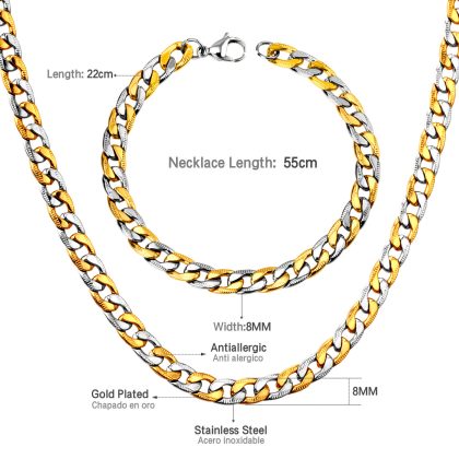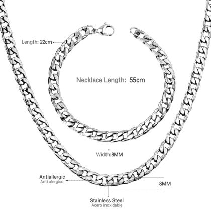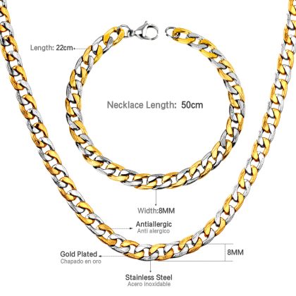 | nameOriginal | European and American hip hop Bracelet Men's 8MM wide stainless steel necklace jewelry electroplated whip necklace bracelet jewelry suit |