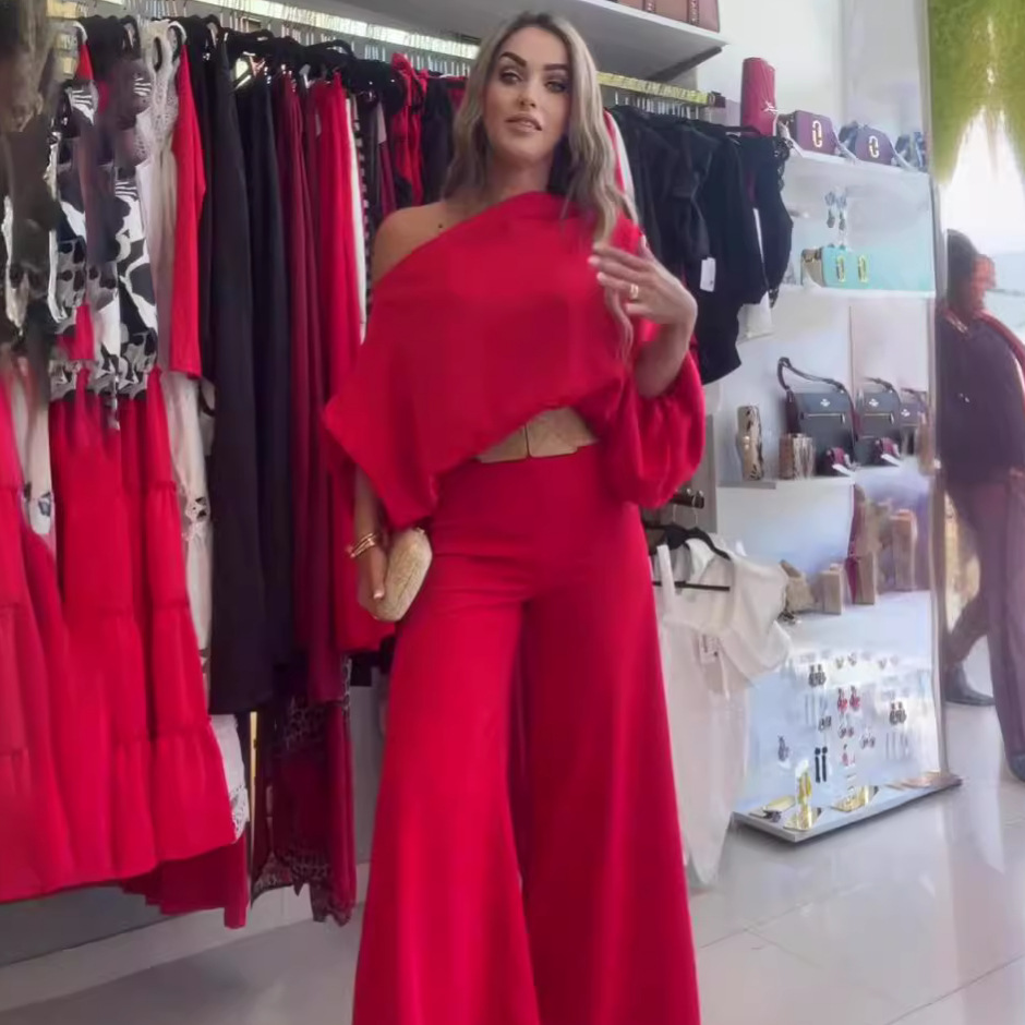 | nameOriginal | European and American Jumpsuit New French High-end Temperament Jumpsuit Summer Slant Shoulder Wide Leg Pants Slimming Trousers Women |