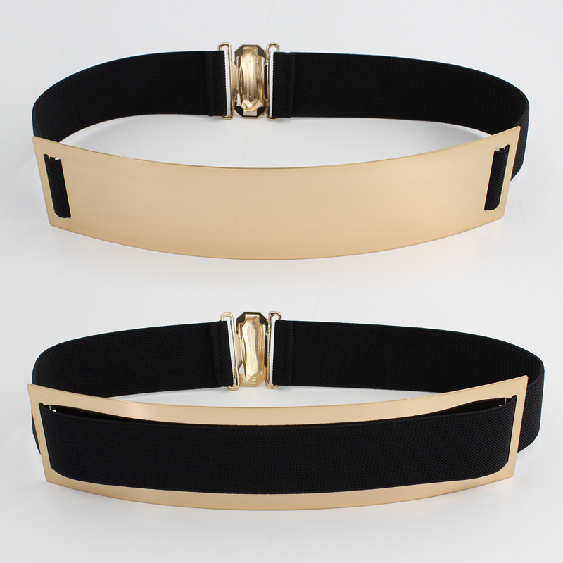 European and American Metal Mirror Decorative Belt Women's Golden Elastic Buckle Elastic Wide Waist Cover with Dress Two Available