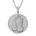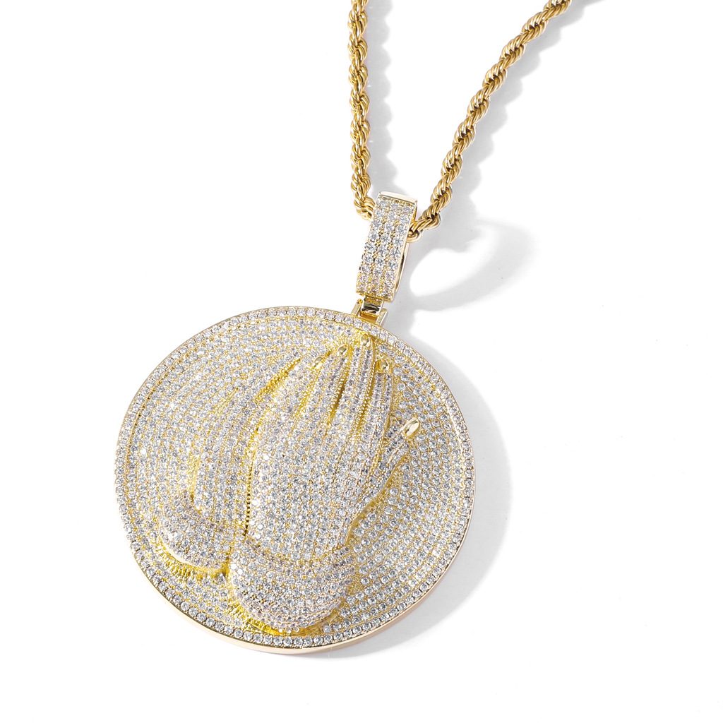 European and American Necklace Hip-Hop Pendant Religious Hands Prayer Micro-inlaid Zircon hiphop Hip-Hop Cross-border Accessories for Men and Women