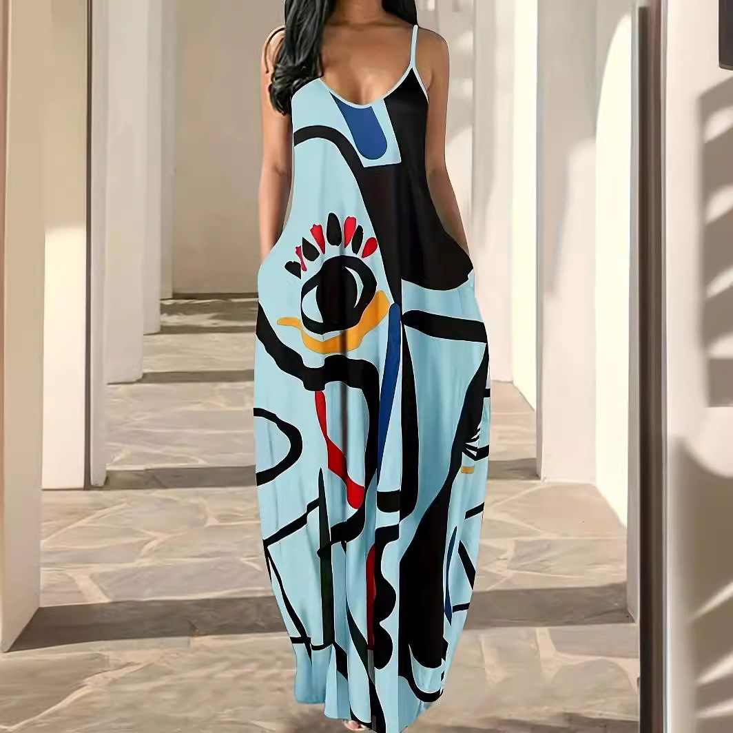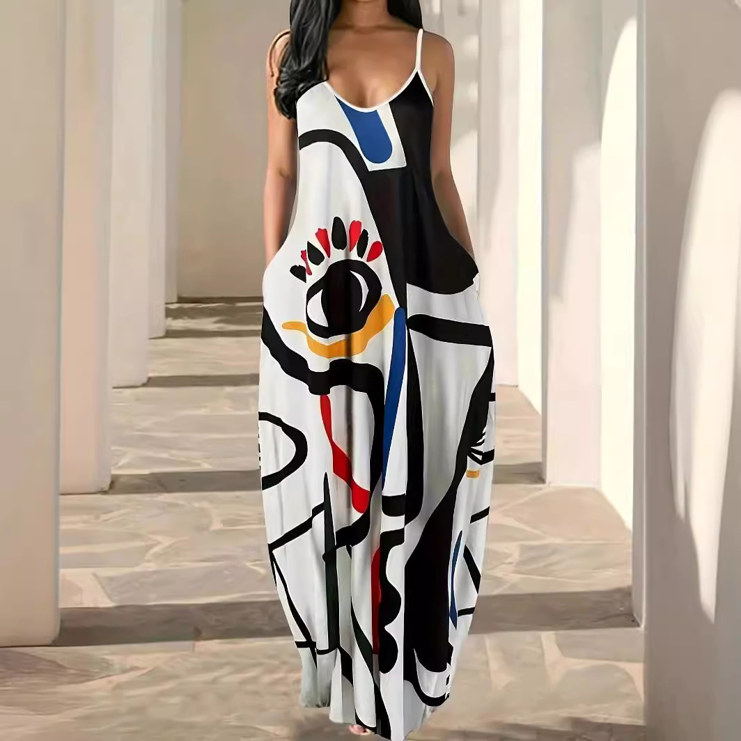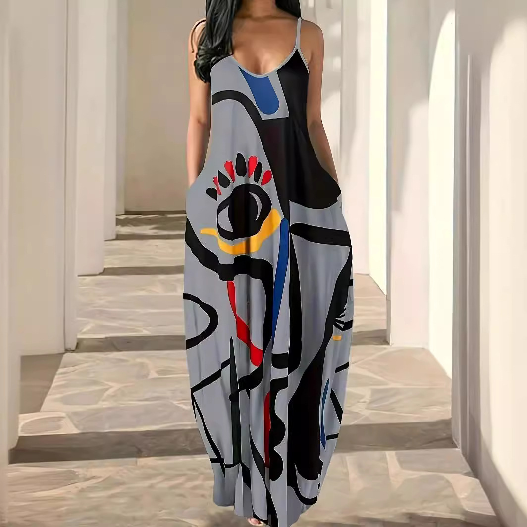 | nameOriginal | European and American New Summer Cool Sling Fashion Deep V Abstract Face Style Digital Printing Elegant Street dress |