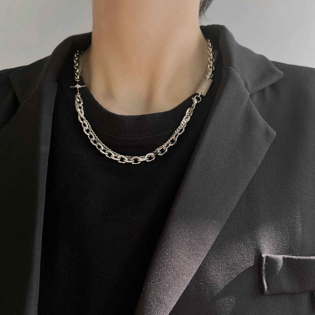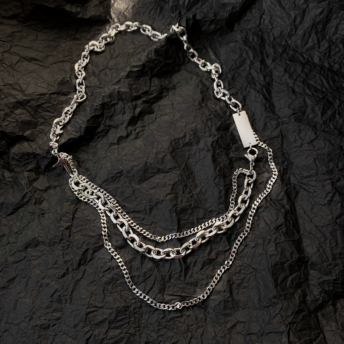 European and American niche design star cross titanium steel necklace men and women high-end hip-hop cold style ins trend accessories