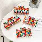 European and American Retro Color Checkerboard Grab Clip Large Hair Grab Women's Personality Fashion Back Head Hairpin Hair Shark Clip