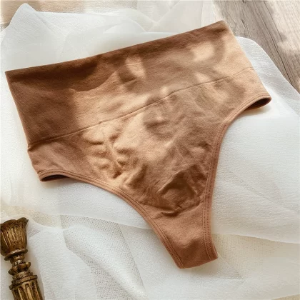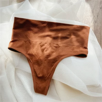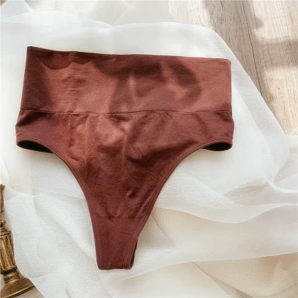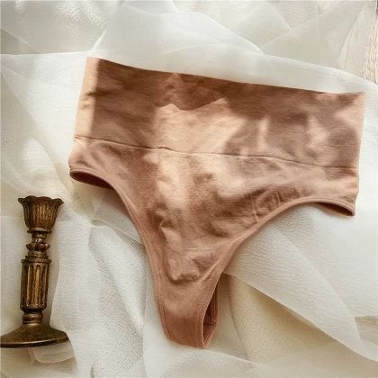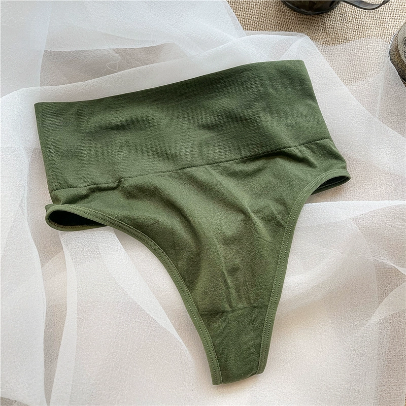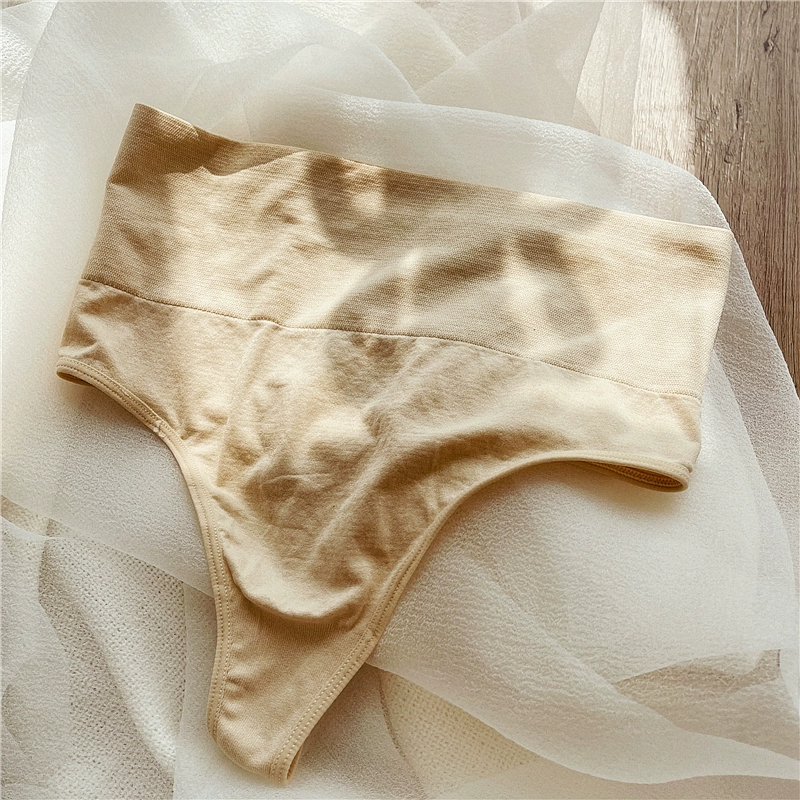 European and American sexy girls' thong high-waisted light belly-controlling solid color seamless invisible panties hot yoga sports shorts