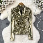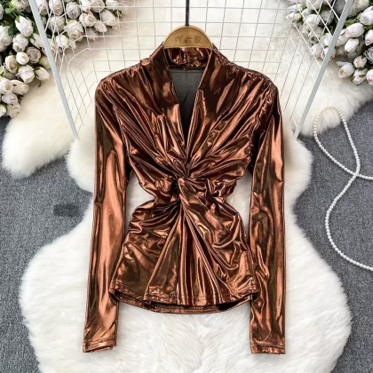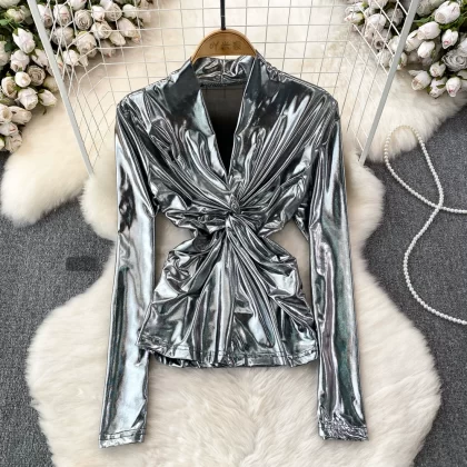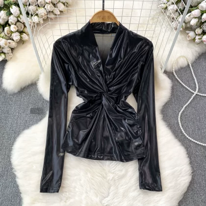 | nameOriginal | European and American sexy kink pleated shiny metallic T-shirt |