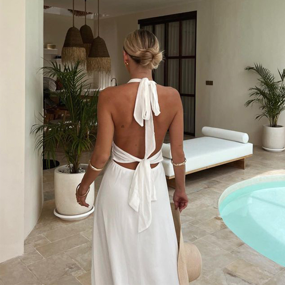 | nameOriginal | European and American Sexy Women's Cross-border Amazon New Neck V-Neck Strap Backless Split dress Elegant Long Dress |