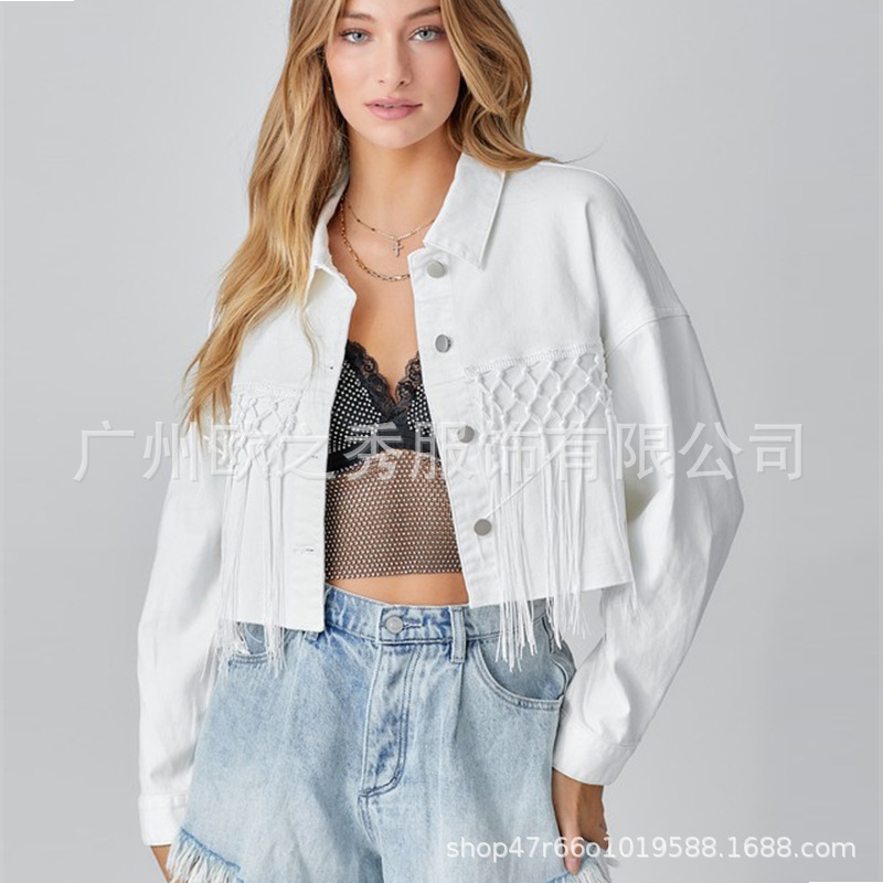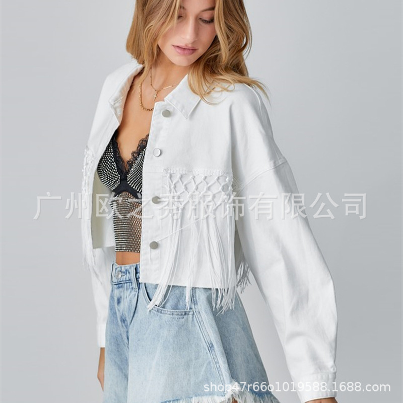 | nameOriginal | European and American style 2024 spring and autumn cross-border Amazon tassel short Denim coat letter sequin jacket top women's clothing |
