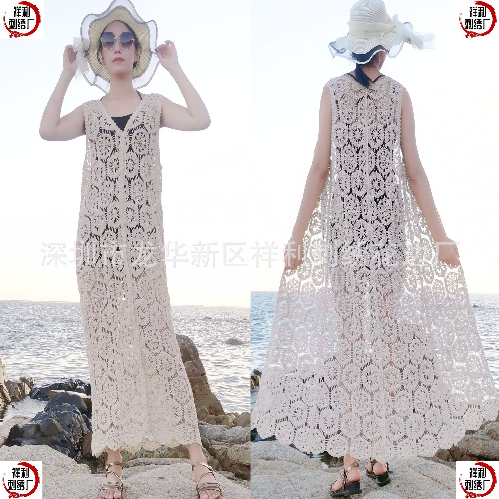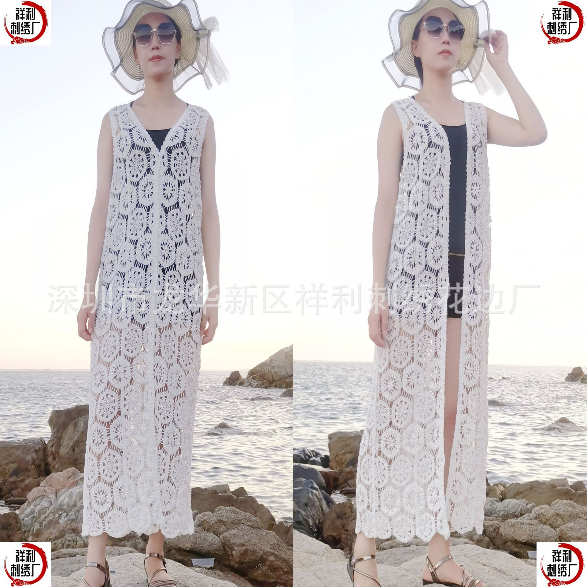| nameOriginal | European and American style crocheted hollow vest long shawl women's V-neck heavy-duty knitted retro artistic sleeveless cardigan outer wear |
