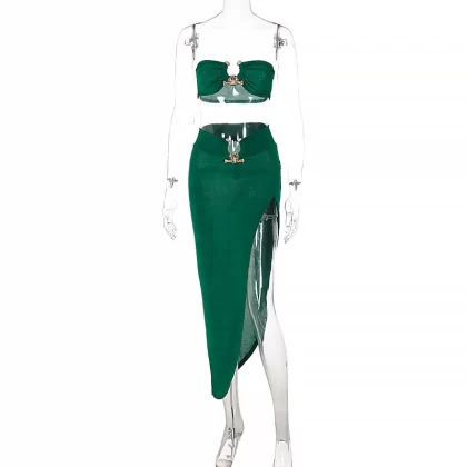 | nameOriginal | European and American style fashionable and sexy new long skirt with exposed navel and spliced tube top, light and mature slit, hip-covering skirt suit, women's skirt |