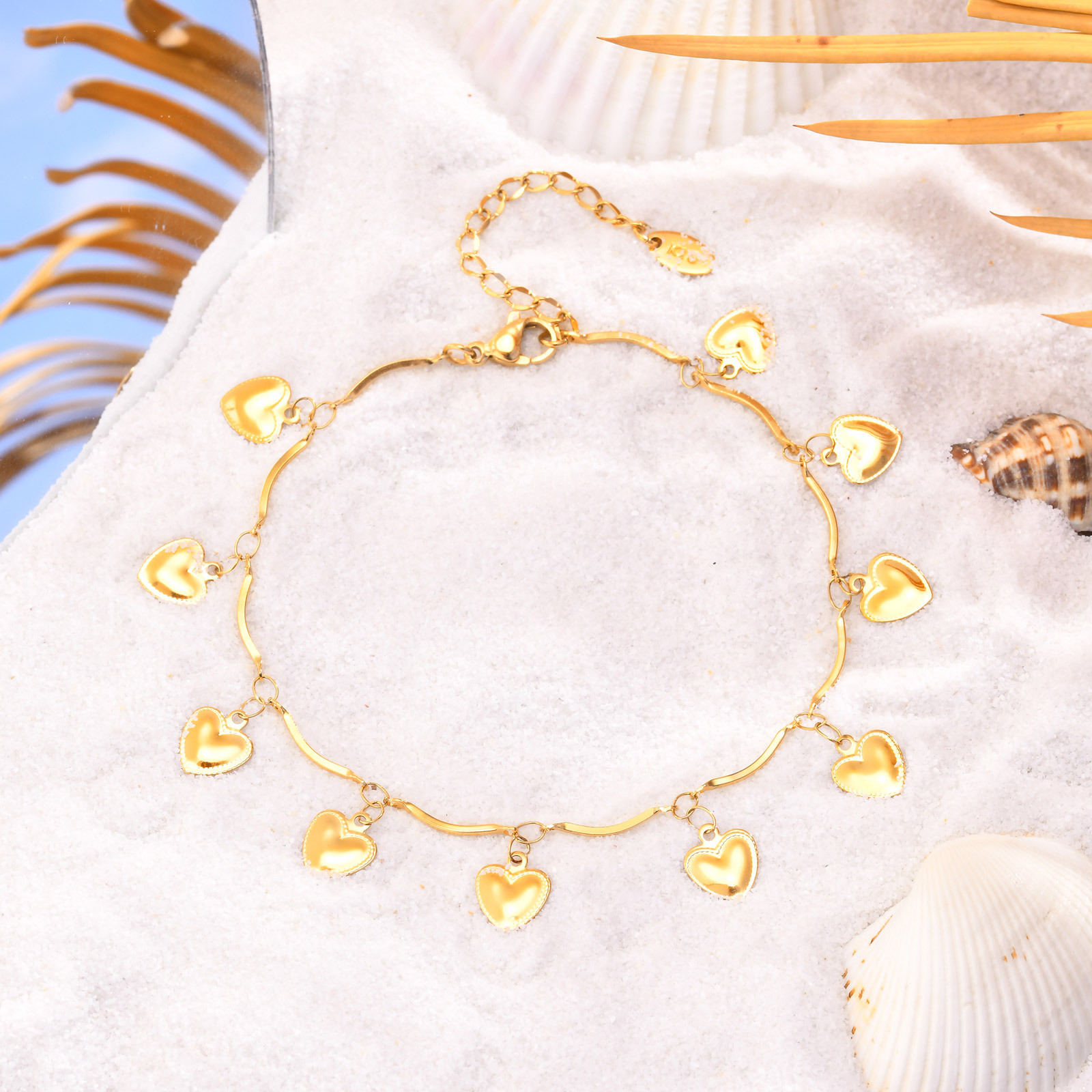 | nameOriginal | European and American style retro ladies stainless steel heart-shaped rectangular curved anklet 18K golden beach summer anklet |
