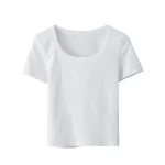 النمط الأوروبي والأمريكي شيا شين أزياء المرأة بسيطة عارضة نمط شهوة نقية بلون رقيقة ضيقة قصيرة الأكمام تي شيرت UWG432052