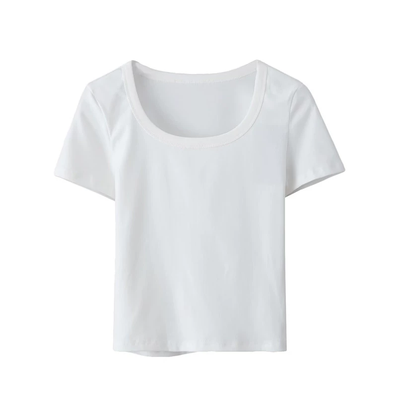 European and American style Xia Xin fashion women's simple casual pure lust style solid color thin tight short-sleeved T-shirt UWG432052