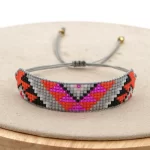 European and American summer new textured ceramic Miyuki rice beads braided geometric rhombus beaded bracelet with adjustable hand rope