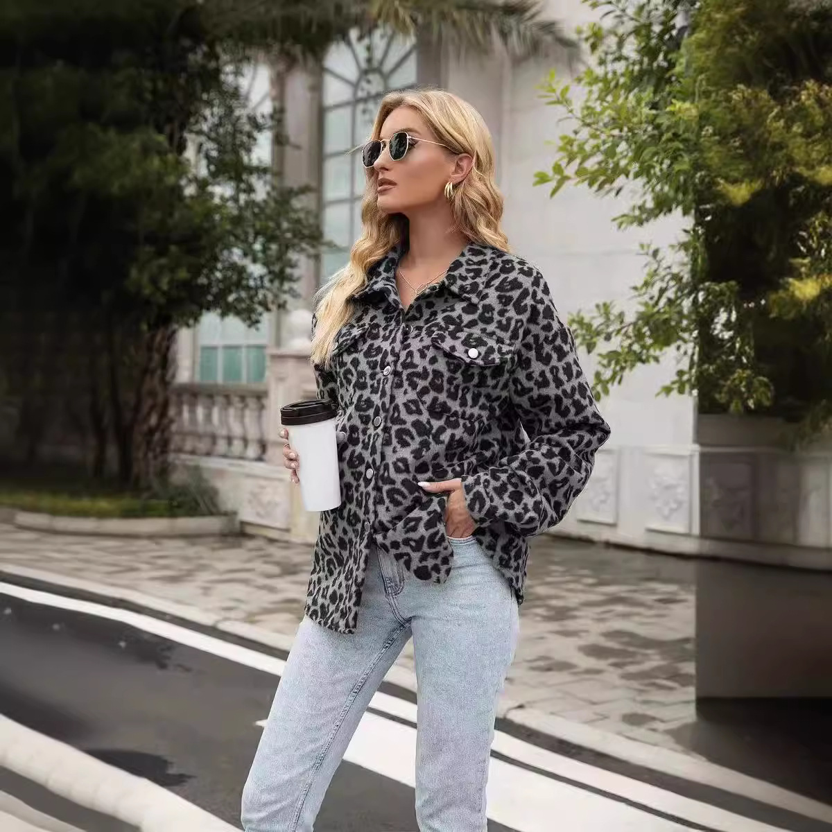 | nameOriginal | European and American Women's Clothing 2023 ebay Amazon Autumn and Winter Explosions Jacket Fashion Long Sleeve Lapel Leopard Print Shirt Jacket |