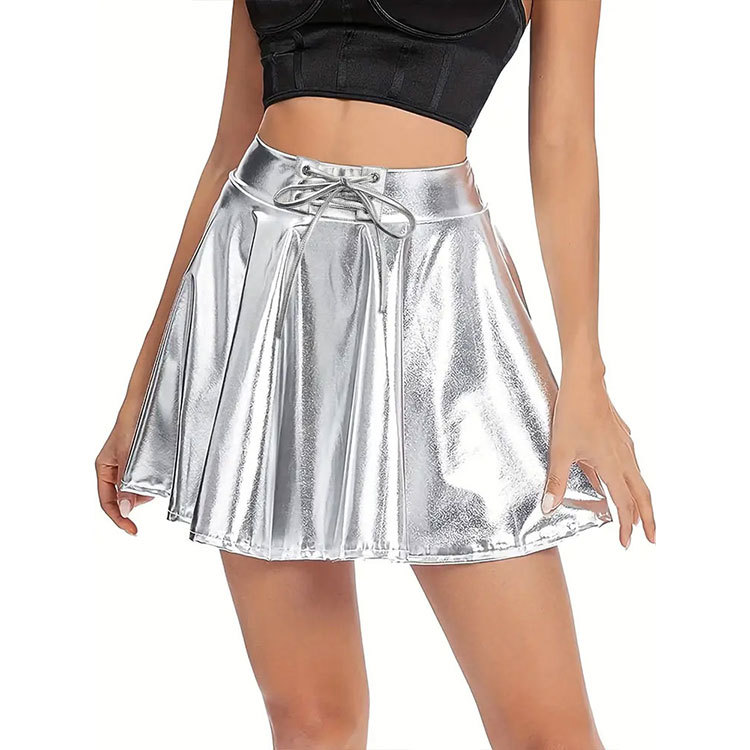 | nameOriginal | European and American women's clothing 2024 Summer new style party style personality silver PU short skirt umbrella skirt sexy elastic strap A- Line |