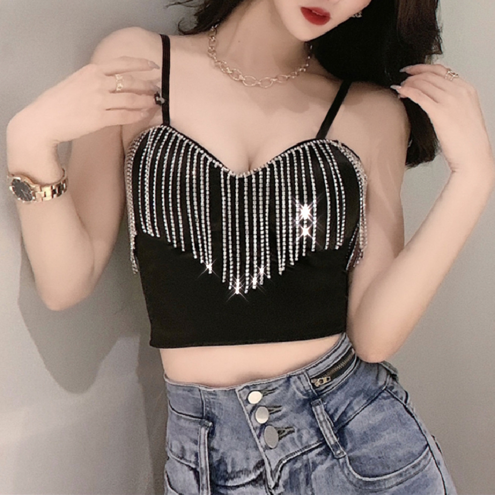 | nameOriginal | European and American Women's Hot Selling Amazon Solid Color Stitching Bright Diamond Tassel Chest Navel Camisole Vest 12000 |