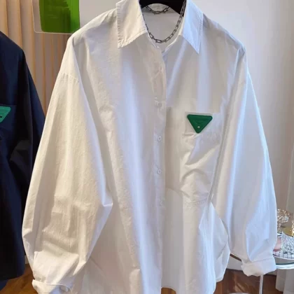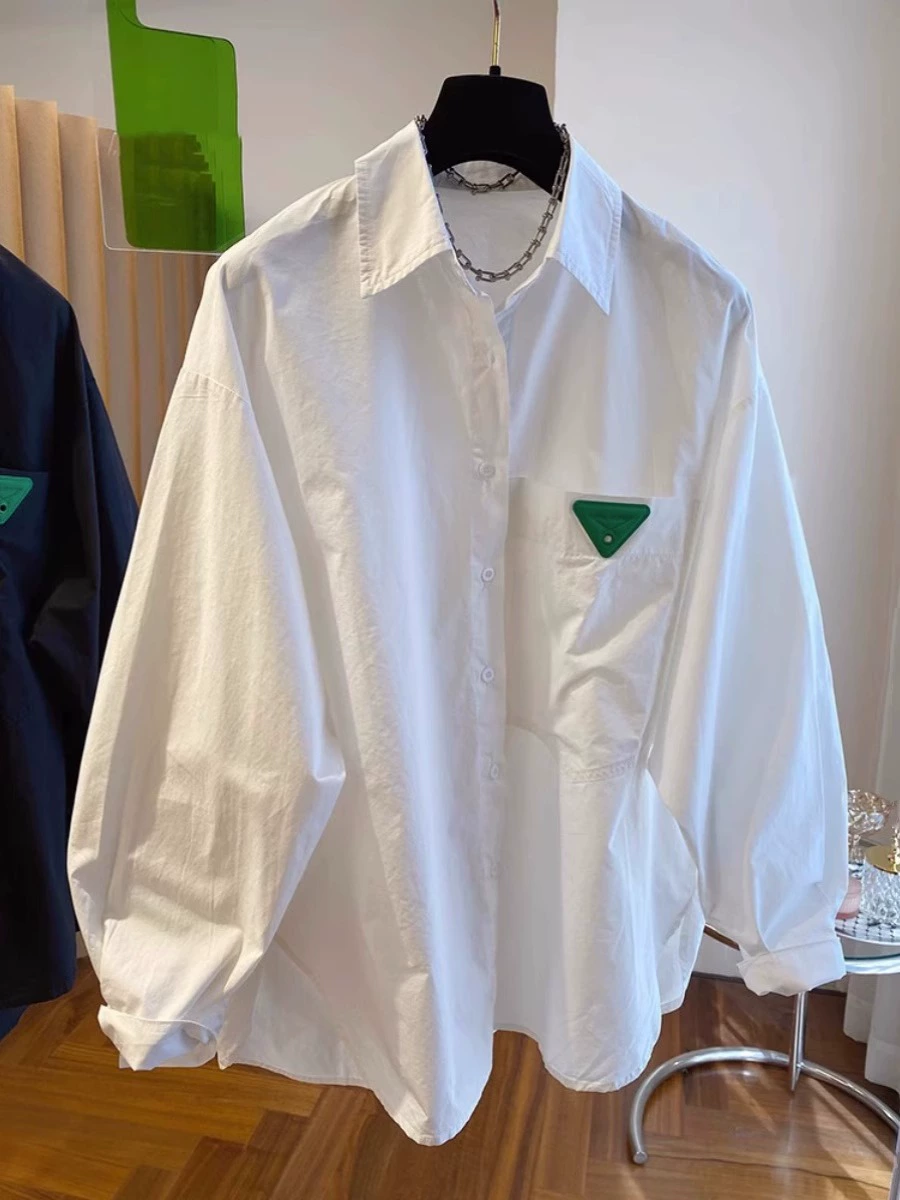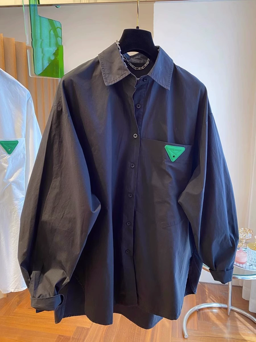 | nameOriginal | European design niche loose casual triangle purple long-sleeved shirt for women autumn large version slimming fat MM top |