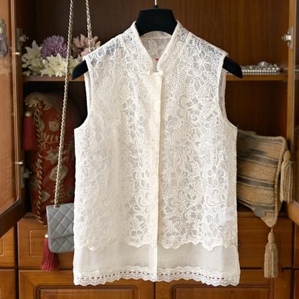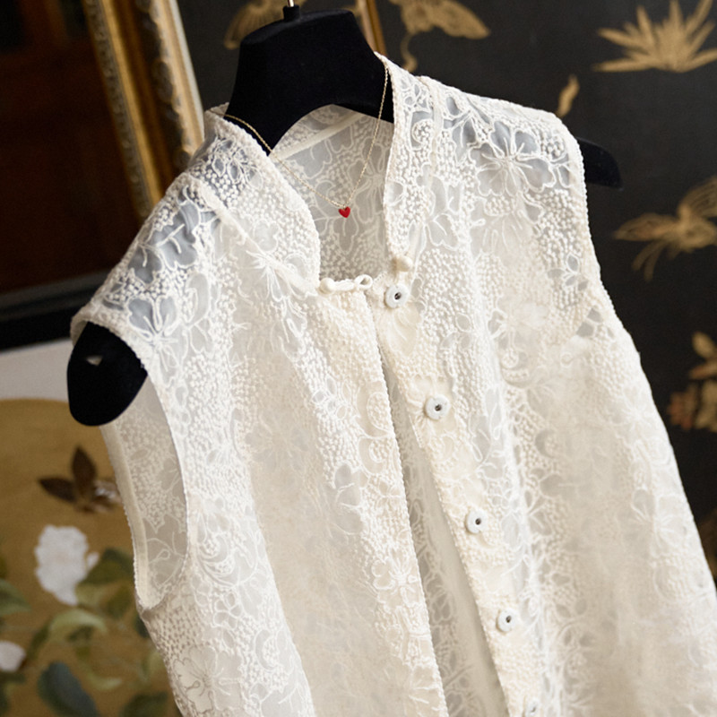 nameOriginal | European exquisite small gorgeous new Chinese organza lace embroidery stand collar buckle vest vest top |