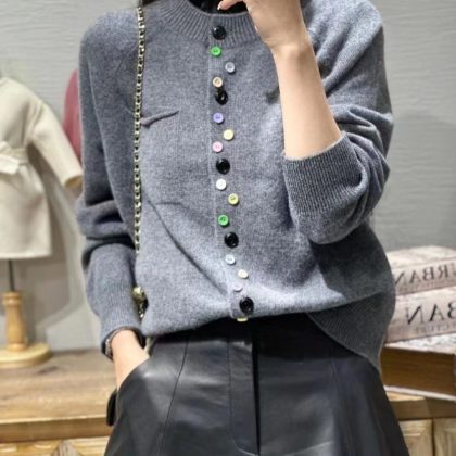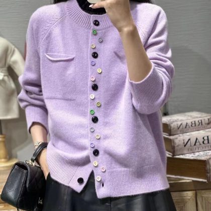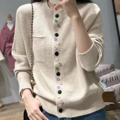 | nameOriginal | European goods early autumn high-end spring round neck single pocket irregular color buckle knitted cardigan for women 2023 new sweater for women |