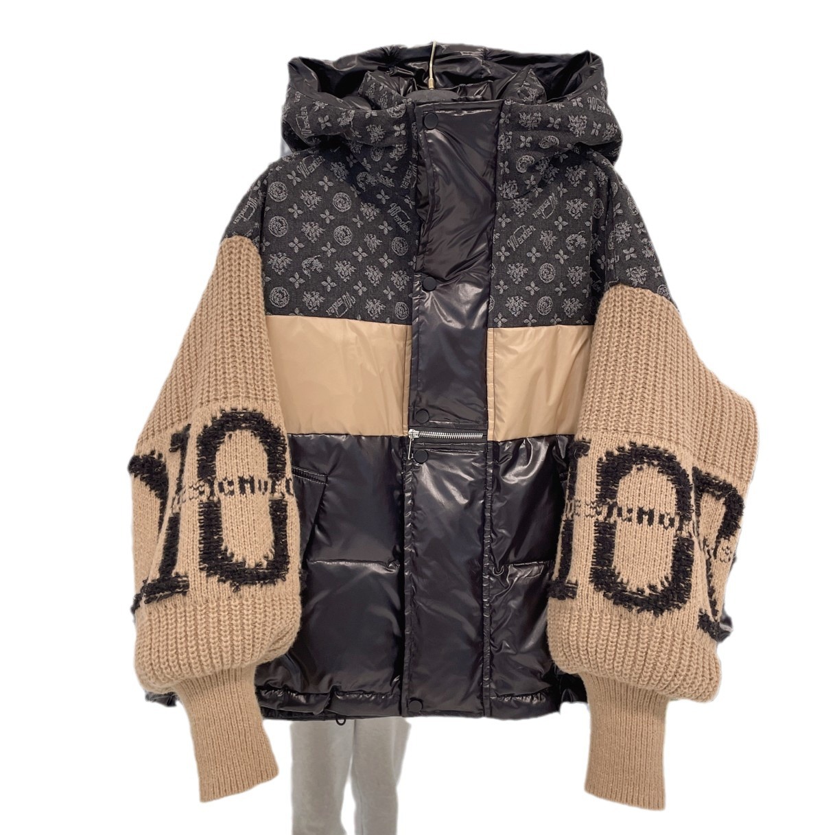 European Knitted Jacket Explosions 2024 Stitching Winter New Fashion Loose Design Tide Down Jacket Factory Outlet