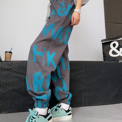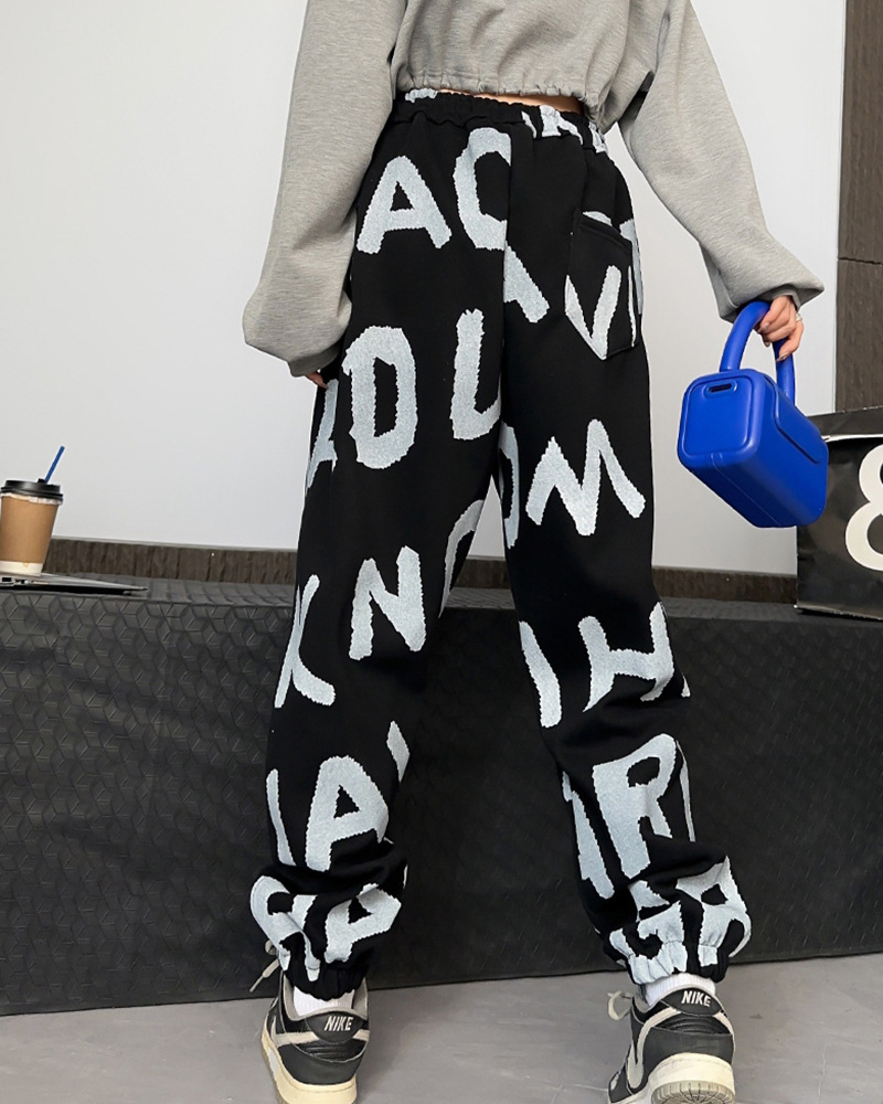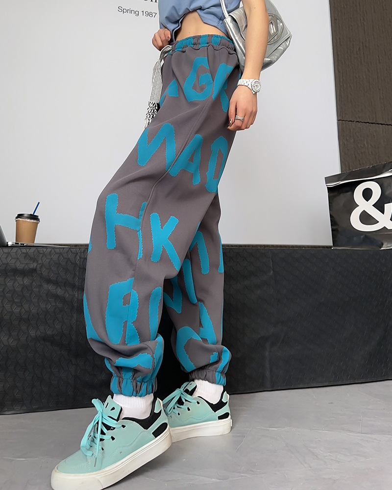 | nameOriginal | European large version oversize notes full printed fashion retro ankle-tied sweatpants sports casual pants overalls |