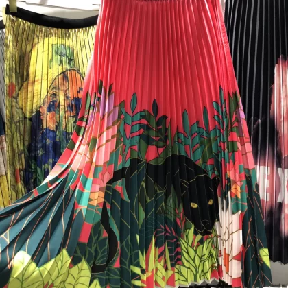 | nameOriginal | European niche over-the-knee retro printed long skirt with wide hem |