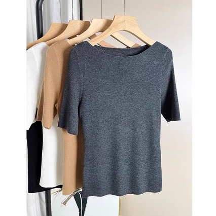 | nameOriginal | European Simple One-character Neck Merino Wool Knitwear Solid Color Thin Short-sleeved Top Slim-fit T-shirt Summer |