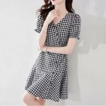 | nameOriginal | European station 2024 summer black and white slimming dress short sleeves |