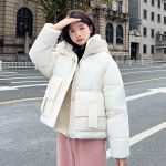 معطف خبز المحطة الأوروبية للنساء قصير بجيب كبير على الطراز الكوري الجديد معطف فضفاض للأسفل معطف شتوي سميك