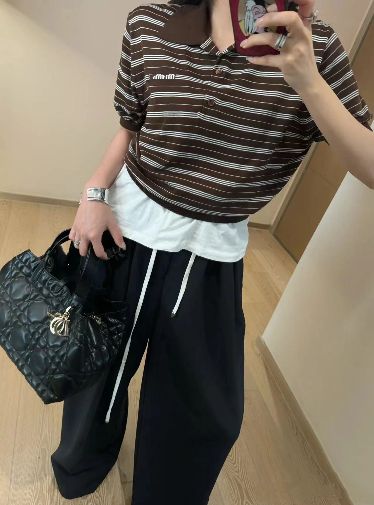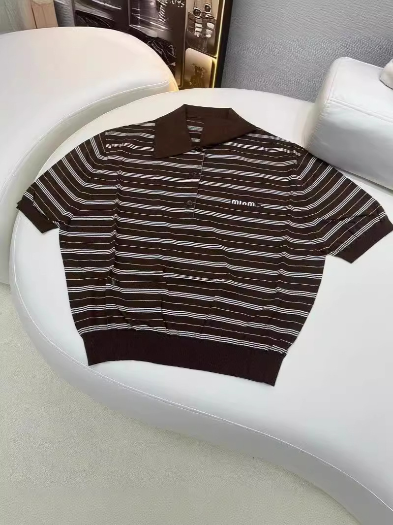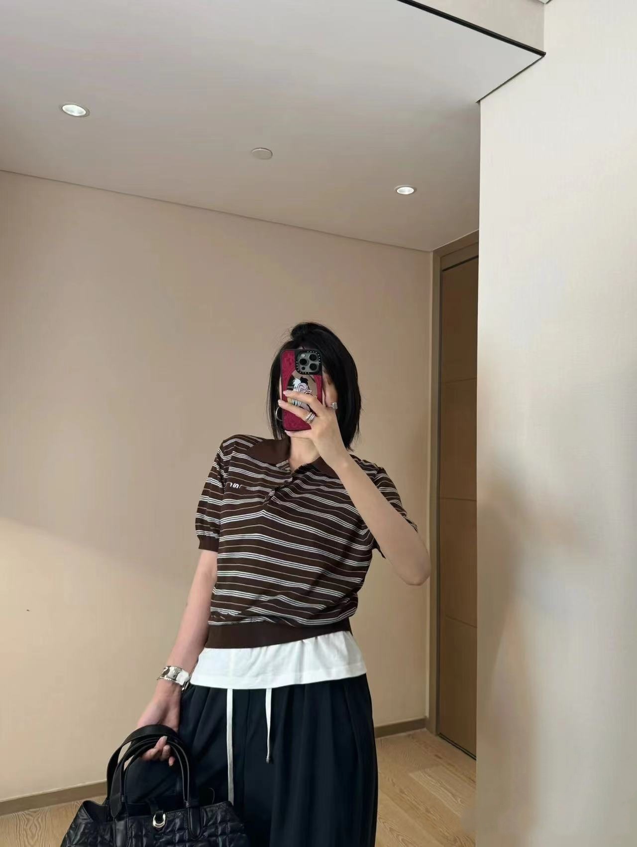 | nameOriginal | European Station High Edition 24 Years Summer New Women's Letters Jacquard Slim-Fit Striped Short Sleeve Knitted Polo Shani Women |