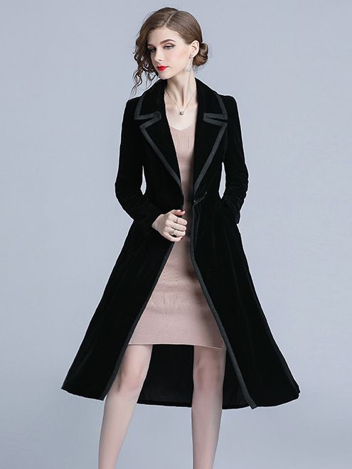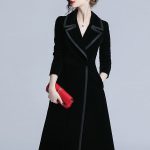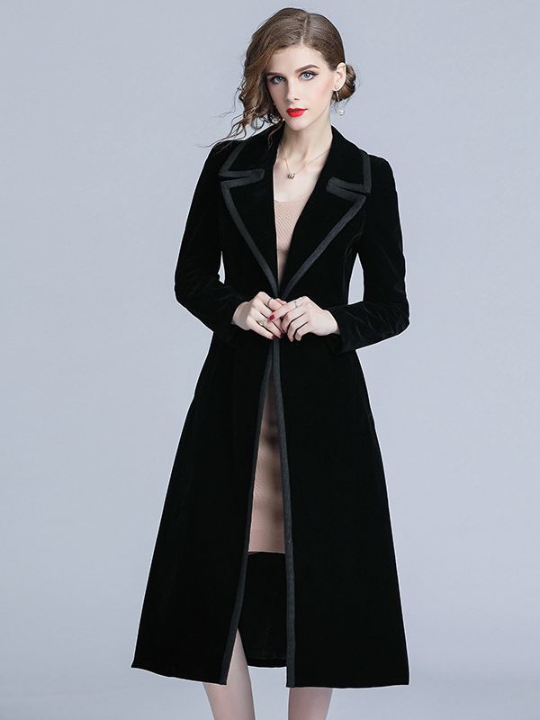 معطف مخملي أسود متوسط ​​الطول عصري من المحطة الأوروبية ملابس نسائية عبر الحدود معطف آلهة جديد للربيع والخريف