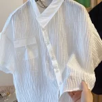 European style placket pleated textured short-sleeved shirt