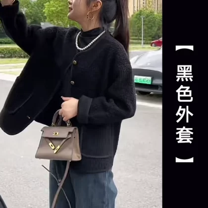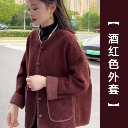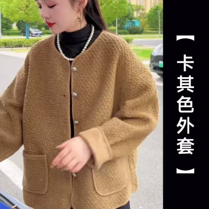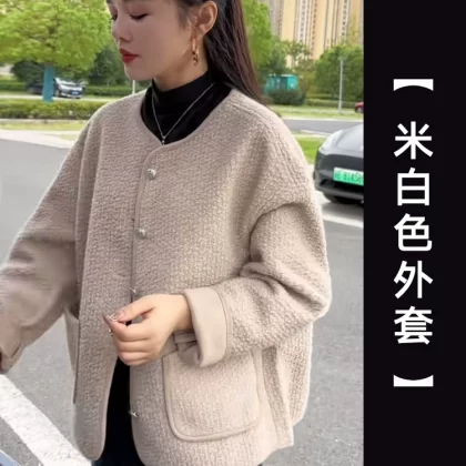 معطف صوفي صغير معطر على الطراز الأوروبي للنساء، راقي، نحيف، عصري وعصري، قطعة واحدة من صوف الضأن من قطعة واحدة للصغار