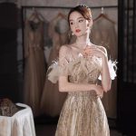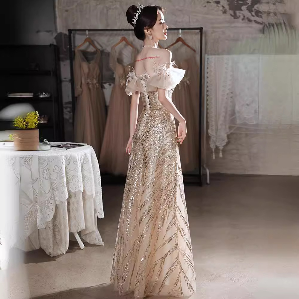 فستان سهرة للنساء 2024 فستان جديد عالي الجودة لأداء مأدبة عيد الميلاد بلون الشمبانيا الخفيف الفاخر