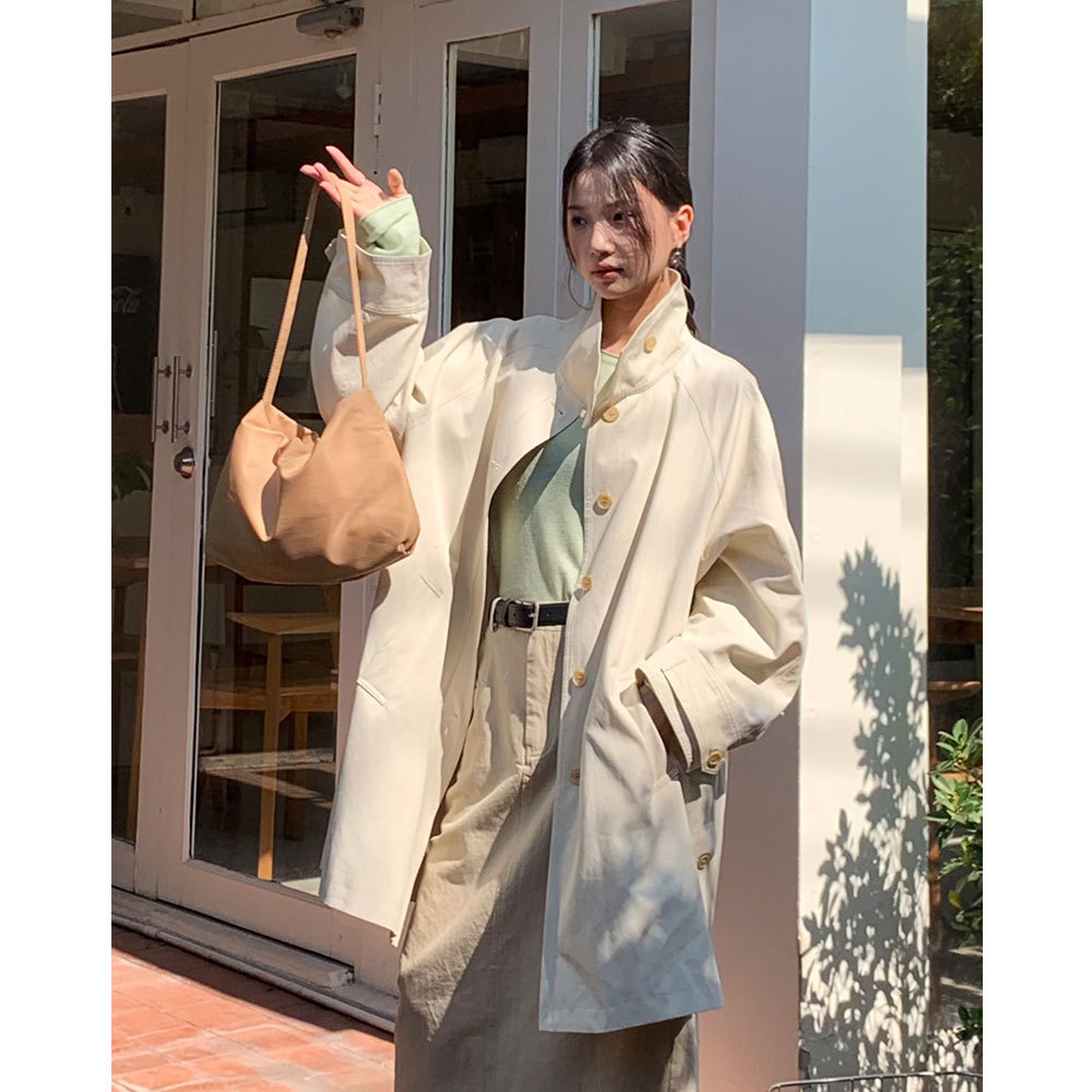 EVERTRUE 2024 trench coat women's spring new Korean style loose slimming stand collar mid-length coat 37327