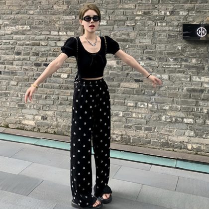 nameOriginal | Every day to wear pants Korean slim casual straight leg pants women's printed floor pants summer |