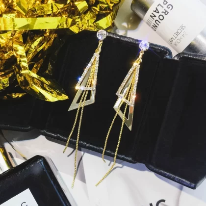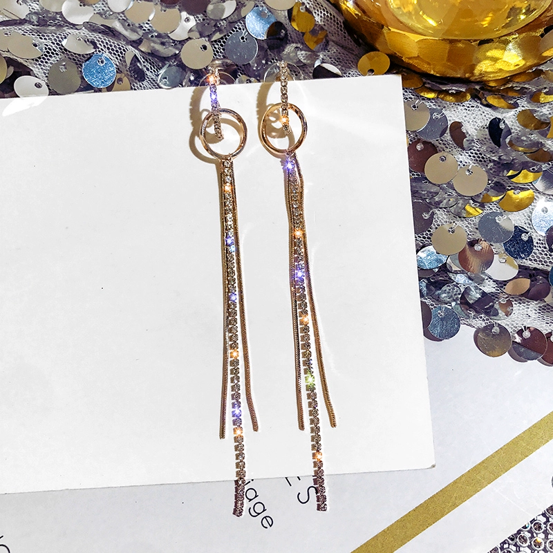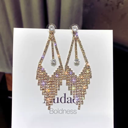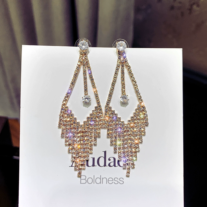 Exaggerated diamond-filled female Internet celebrity slimming tassel earrings