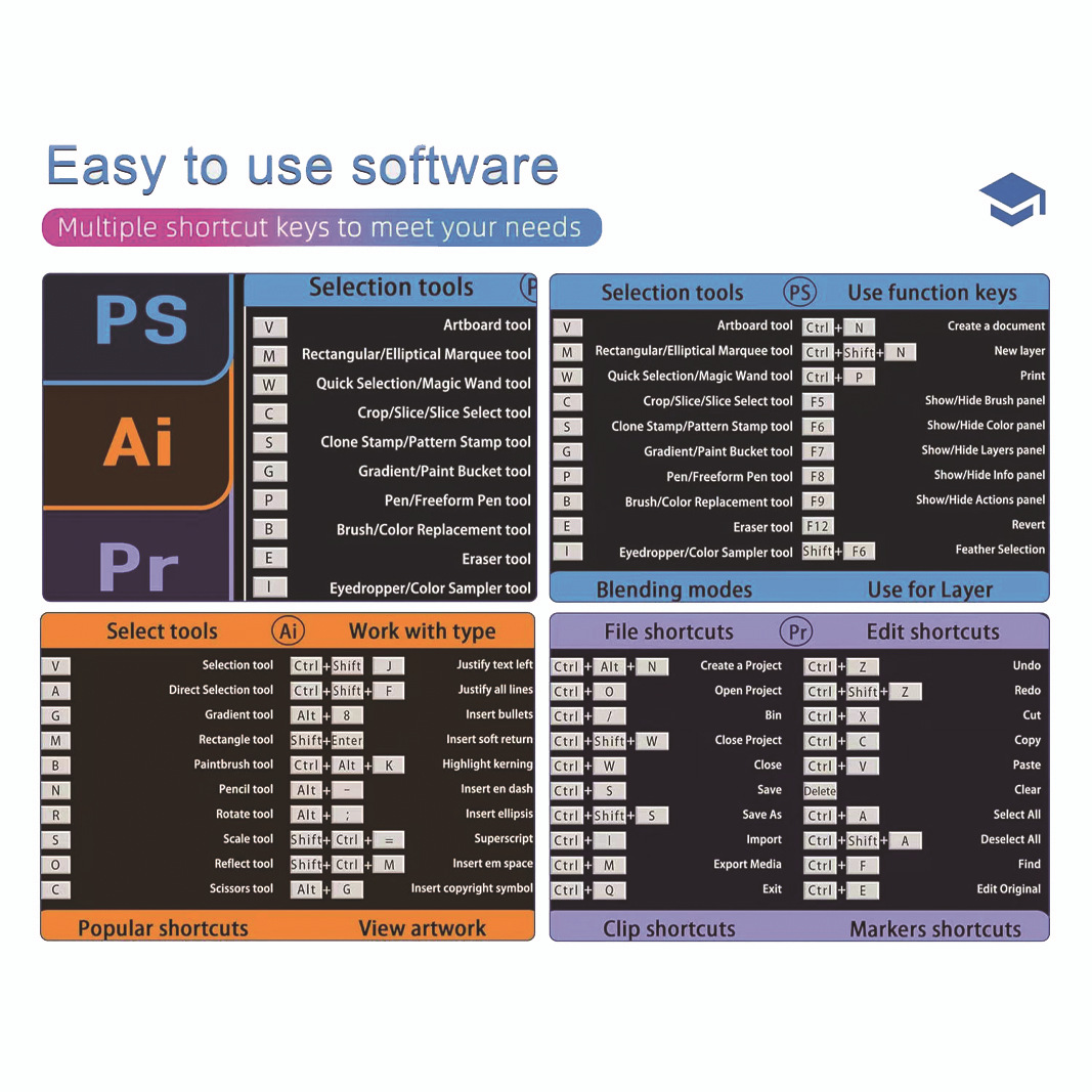 | nameOriginal | EXCO Shortcut Mouse Pad ps ai pr Full English ip Computer Office Desk Pad Cross-border European and American Desk Pad |