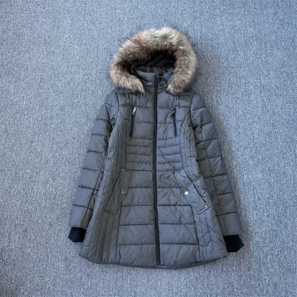 Exported to Europe and the United States, large size medium-length cotton coat for women, taking off the hood, slimming the waist, windproof, waterproof, outdoor cold protection and warmth