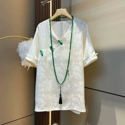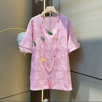 | nameOriginal | Extra fat V-neck dark flower blouse for fat girls, fashionable and versatile |