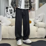 Extra large size 300 pounds Hong Kong style retro ice silk casual pants men's summer trousers straight wide leg pants loose pants