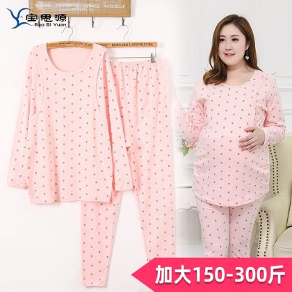 Extra large size maternity clothing 300kg cotton pregnant women autumn clothing long Johns suit pajamas pajamas plus fat plus size 200kg
