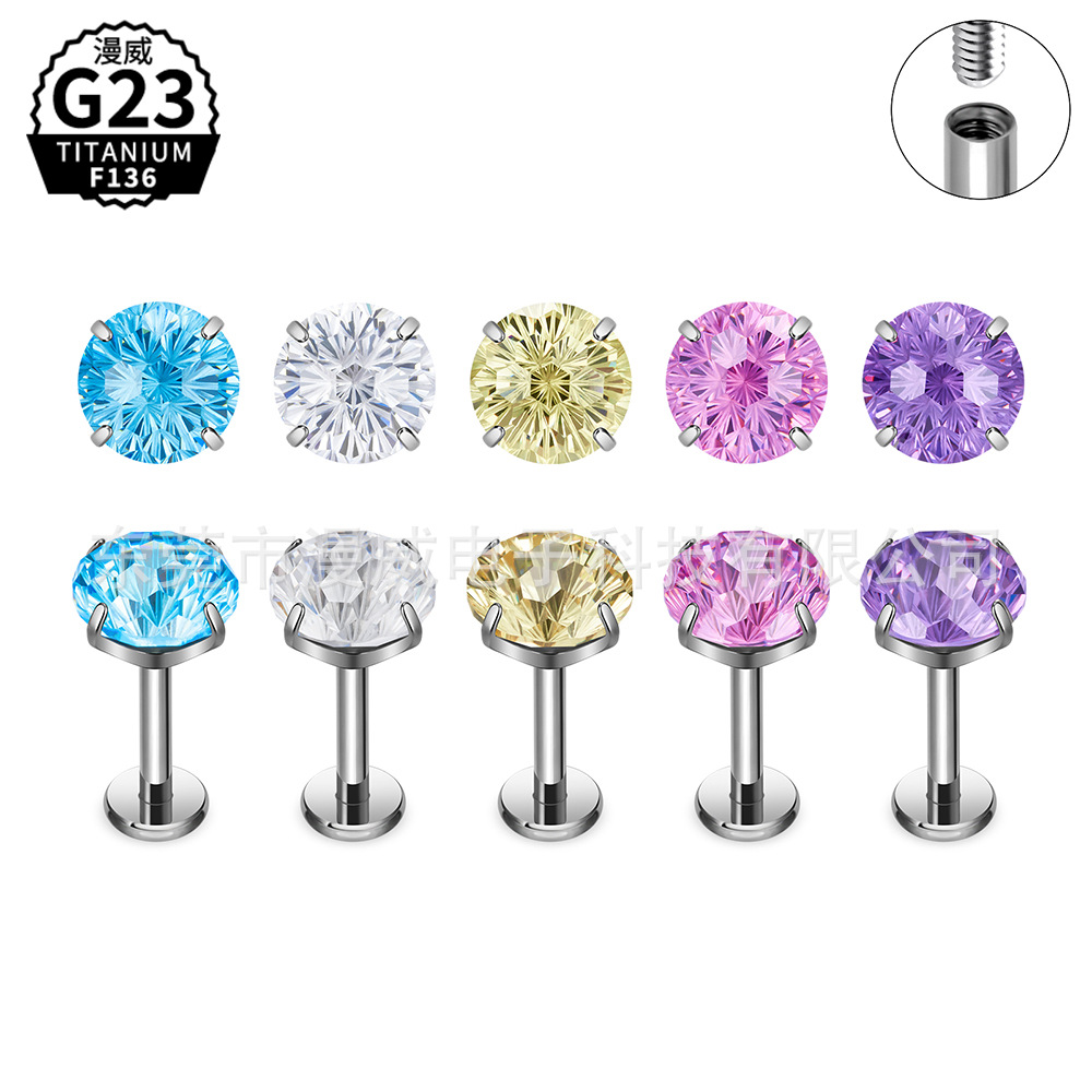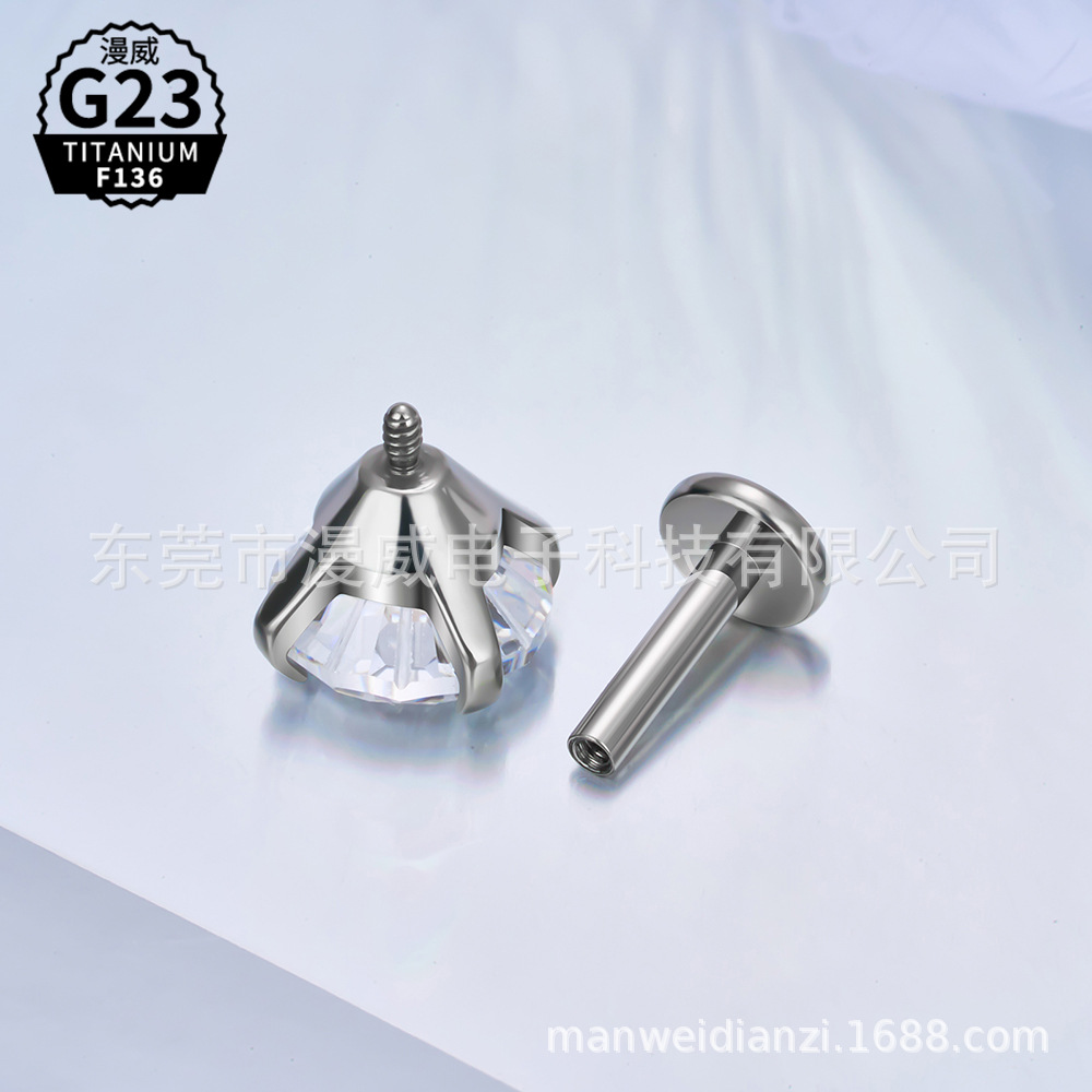 | nameOriginal | F136 titanium alloy super flash claw with round bottom fireworks cut zircon super cool titanium alloy inner tooth lip nail ear bone nail puncture |