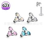 F136 titanium ear studs inner teeth triangle flower bag inlaid zircon lip nail G23 titanium alloy body piercing jewelry ear bone nail
