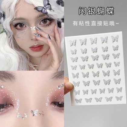 Face Eye Makeup Snowflake Face Jewelry Butterfly Sticker Self-adhesive Nail Art Decal Sequin Decoration Valentine's Day New Year