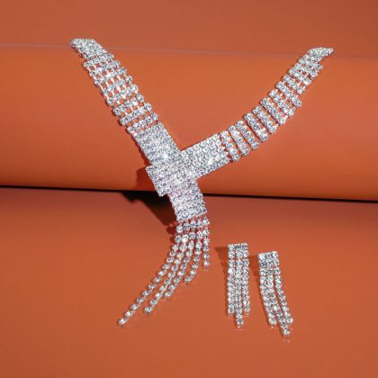 | nameOriginal | Factory direct rhinestone necklace earrings suit Korean tassel clavicle chain full diamond claw chain necklace cross-border necklace |