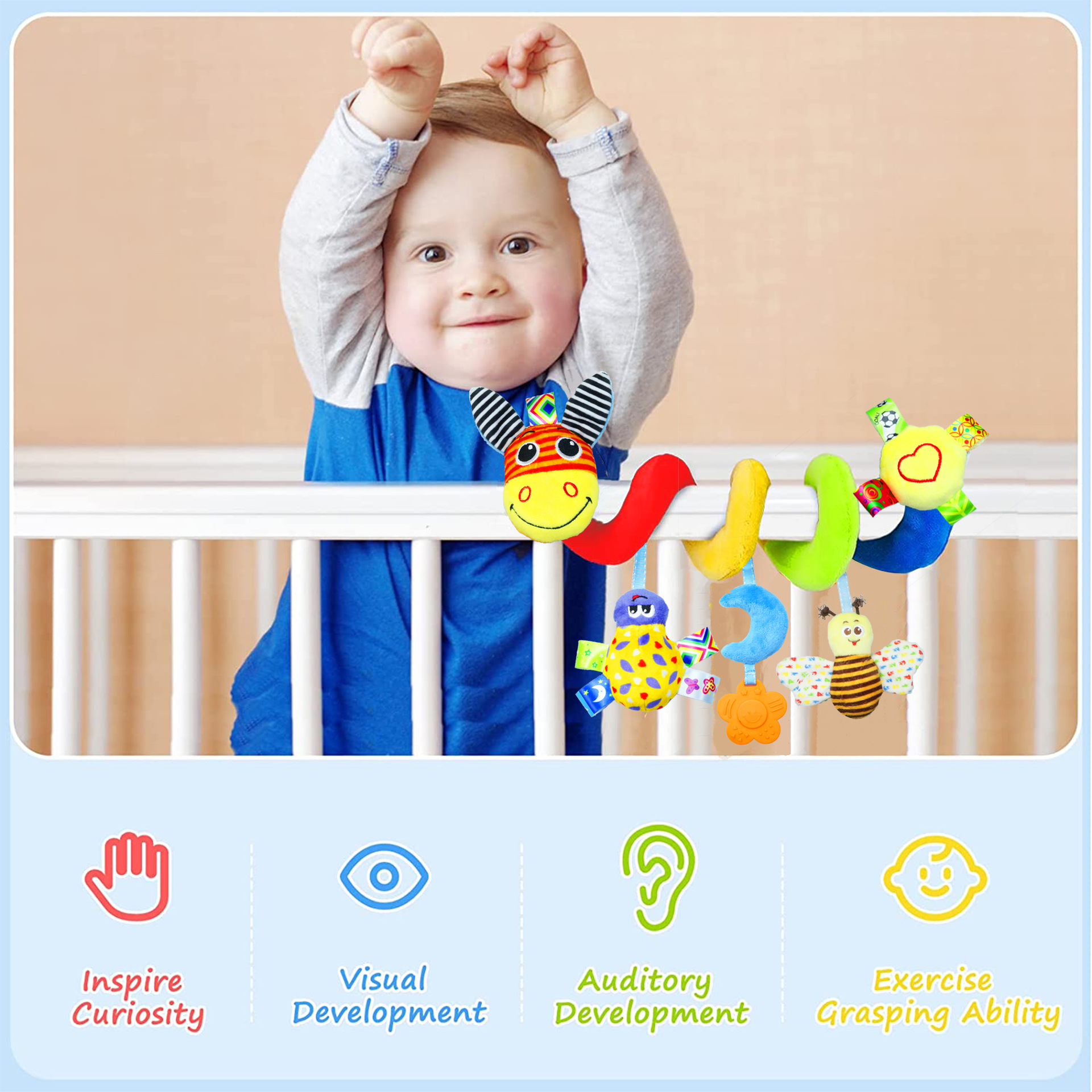 | nameOriginal | Factory Direct Supply Cross-border Baby Donkey Insect Bed Winding Hanging Belt Bell Ring Paper Plush Pacifying Newborn Toys |